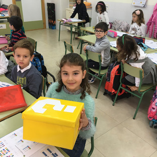 Cada curso tuvo que buscar enseguida esa enigmática caja amarilla por su clase, y abrirla encontramos ¡ nuestras primeras monedas ! . Entonces nos enteramos de que las monedas también serían muy importantes para conseguir la gran misión de ser Guardianes del Jardín, y que deberíamos conseguir cuantas más mejor de ahora en adelante. Para poder conseguir esas primeras monedas, ya tuvimos que poner nuestro ingenio en marcha y cada curso tuvo que resolver el enigma que había dentro de la caja: descifrar mensajes, formar frases….
